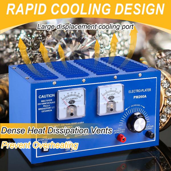 Effective Heat Dissipation: The large-area heat dissipation on the top of the electroplating kit supports effective cooling, which reduces the temperature of the plating machine and provides stable running.