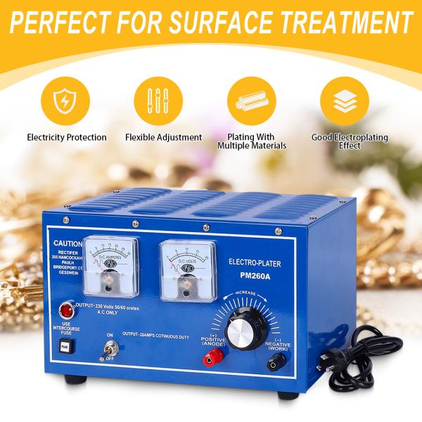 Dual-Dial Digital Display: The gold electroplating kit has a premium dual-dial digital display. The voltage dial and current dial are able to achieve precise adjustment and control to meet different situations.